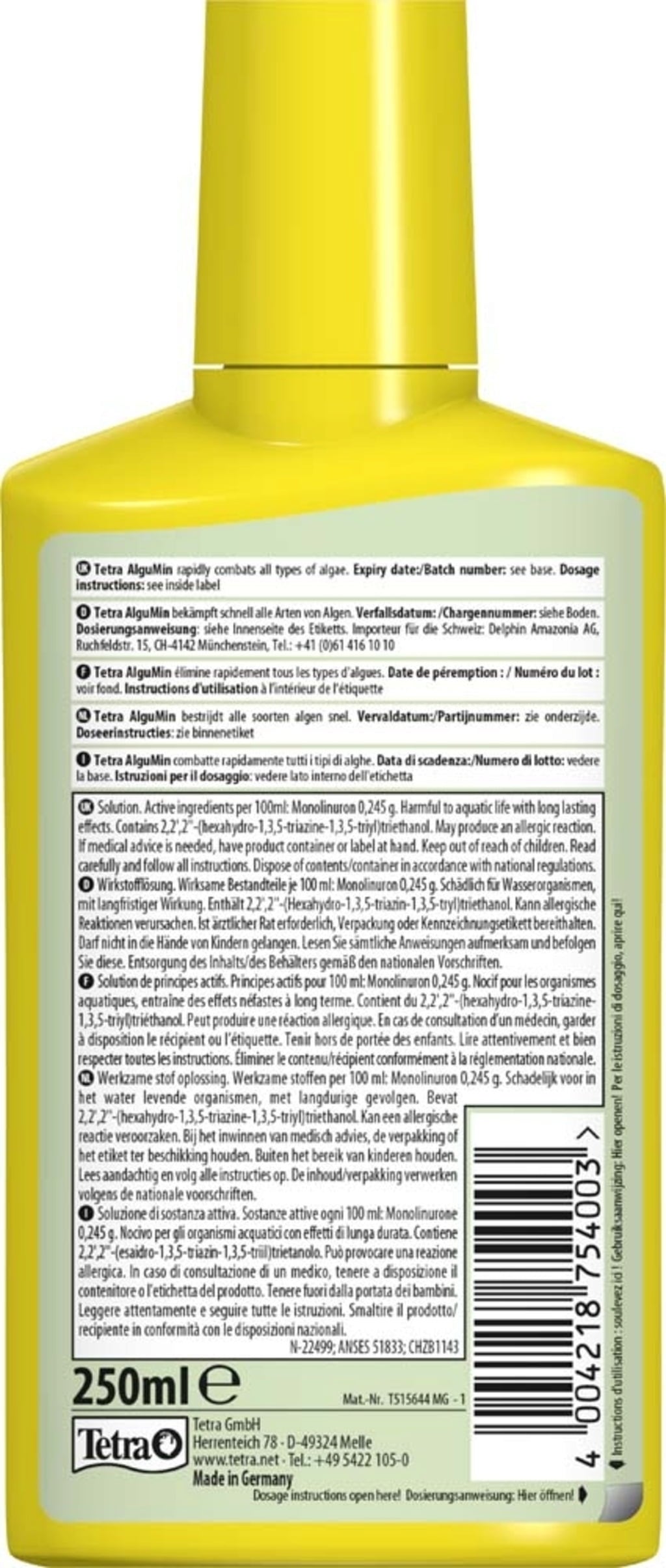 Tetra AlguMin is used for the onset of algae problems and, when used properly, is harmless to fish, plants and microorganisms. AlguMin is characterised by a broad spectrum of activity against all common algae species, which uses humic substances as a natural anti-algae active ingredient.