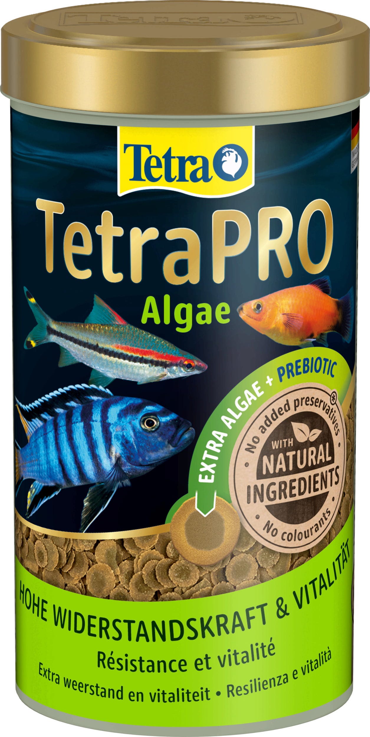 The TetraPro Algae is a vegetable premium feed in crisp form for all ornamental fish in the freshwater aquarium and in various containers.